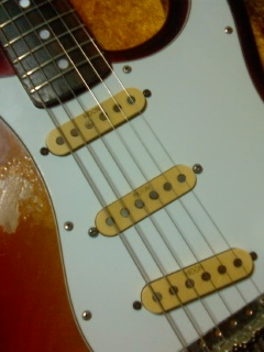 センターピックアップのみ元のMOONは断線しているので現在はFENDER USA(たぶん。部屋に転がってたやつ)が付いています。